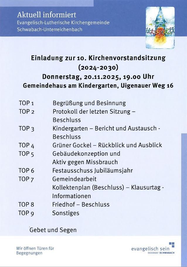 Im schönen Schwabachtal gelegen sind Unter- und Oberreichenbach ein Bindeglied zwischen Stadt und Land: Hier begegnen sich Tradition und Gegenwart auf einladende Weise. Offenheit und Wir-Gefühl verbinden sich zu einem vielfältigen Gemeindeleben.